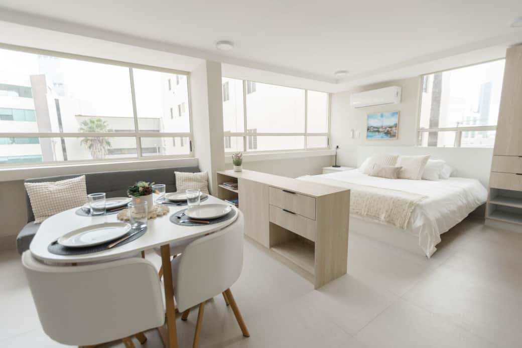 Este departamento de 32 m² ha sido diseñado con una distribución inteligente y con detalles acogedores que crean un ambiente cálido, moderno y relajante.
